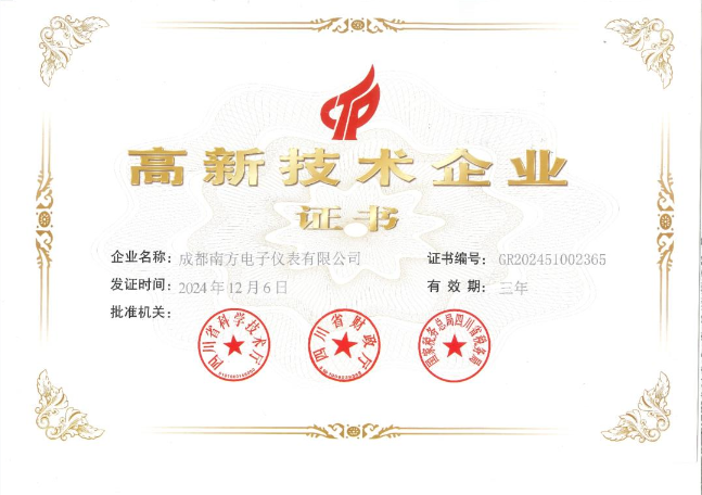 成都南方电子仪表有限公司成立于1994年5月,注册资本5000万元,是一家专业致力于工业自动化领域设备研制、生产、集成、总包于一体的多元化高科技企业。公司技术和研发实力雄厚,被政府认定为“高新技术企业”、国家级“专精特新”小巨人企业、“省、市企业技术中心”、省市“军民融合单位”、“成都市产学研联合实验室”、“知识产权示范单位”等荣誉称号。连续二十五年被成都市工商行政管理局授予“重合同、守信用”企业。
