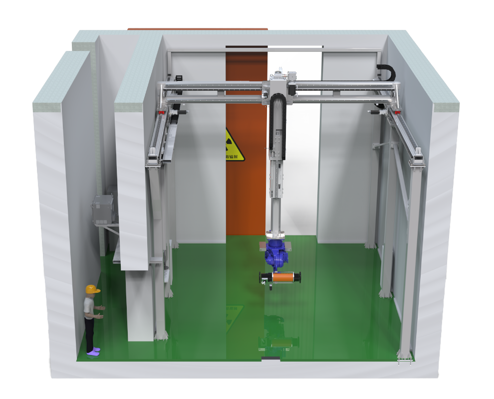 核心参数 | 工作范围:6米×5米×2米(支撑定制);运动机构定位精度:0.2mm;机械手综合定位精度:0.5mm;综合定位精度:2mm;射线机对位精度:5mm;检测精度:0.5mm;X射线机额定管电压:300kV;焦点尺寸标称值:1mm;操控方式:远程/就地;检测方式:3D扫描 |
