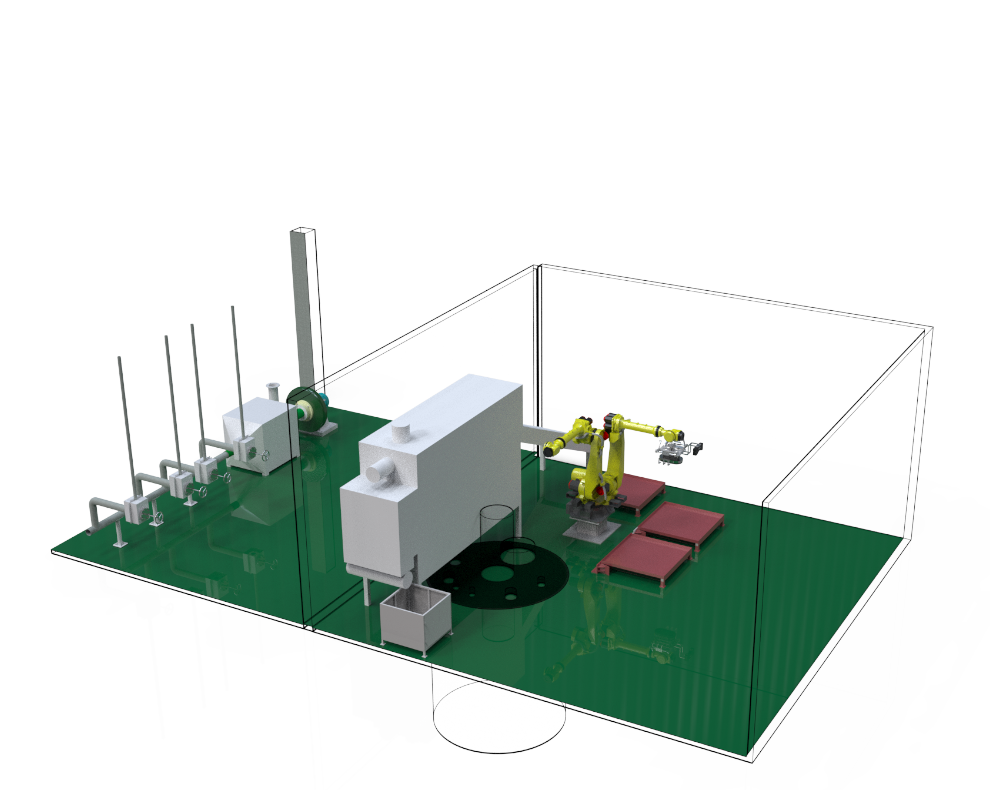 本系统是专为高温、高粉尘环境设计的焦炉煤气精脱硫配套装备,核心用于50kg袋装碱料的自动拆垛、全密封破袋及投料作业。系统集成六轴机械臂、3D视觉定位、密封破袋机及收尘装置,可完成从五花垛码垛物料拆垛、碱袋精准抓取,到全密封破袋、料袋分离、粉尘收集的全流程自动化操作,彻底替代人工在恶劣环境下作业,保障生产安全与效率。